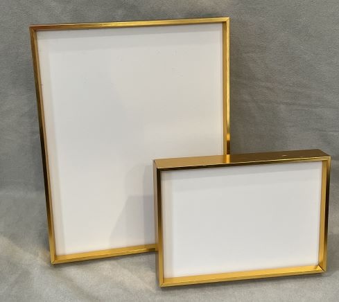 Simple modern metal frames, allow for a quick finished product. Simply unscrew the back on one side and slide in your print. Comes in both a gold and black finish. 5x7 or 8x10 sold in packages of 3.